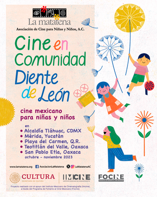 La Matatena, Asociación de Cine para Niñas y Niños presenta Cine en Comunidad Diente de León, funciones de cine dedicadas para niñas, niños y adolescentes que consisten en una selección de cortometrajes mexicanos de animación, ficción y documental, realizados por profesionales y por niñas y niños.