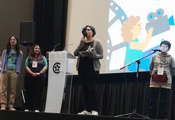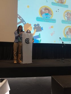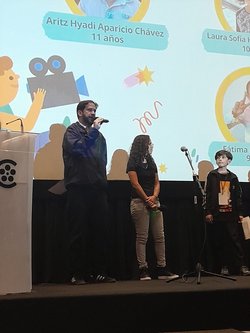 Y con esta mención llegamos al término de las premiaciones, para dar paso a otro de los momentos cumbre de esta Ceremonia de Clausura. Subió al estrado Mayela Valdes, directora del Taller de animación Cuadro X Cuadro, y Bastien Martin por parte de Camera ETC, para presentar a las niñas y niños realizadores, quienes en esta ocasión les tocó realizar su cortometraje en las instalaciones de los Estudios Churubusco, cada niña y niño expresó su sentir al participar en este taller y sin más preámbulo se dio paso a la premier del Cortometraje fruto de este trabajo titulado: Contratos