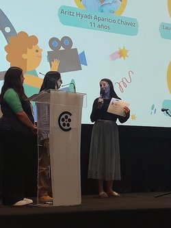 Recibió el premio Kenia Carrillo Aquino, agradeciendo al jurado infantil por el premio que le otorgaron.