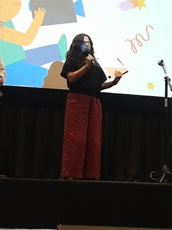 La tarde continuaba avanzando y así, llegó el turno de entregar la 1ra Mención especial cortometraje de animación Un paseo para Emilio de Miguel Anaya Borja (México, 2024) Porque su animación y diseño de personajes son lindos, la música es preciosa y el guión es muy divertido, que está contado en verso. Representa muy bien la cultura de la Ciudad de México. El taxi rosa, los animales de aquí y que hablan chilango. Algunos cuentan lo que les está pasando en la vida real. El papá de Emilio nos enseña que hay todo un mundo fuera del teléfono. La ciudad es un gran universo con muchísimas cosas que hacer, incluso en tu propio barrio.