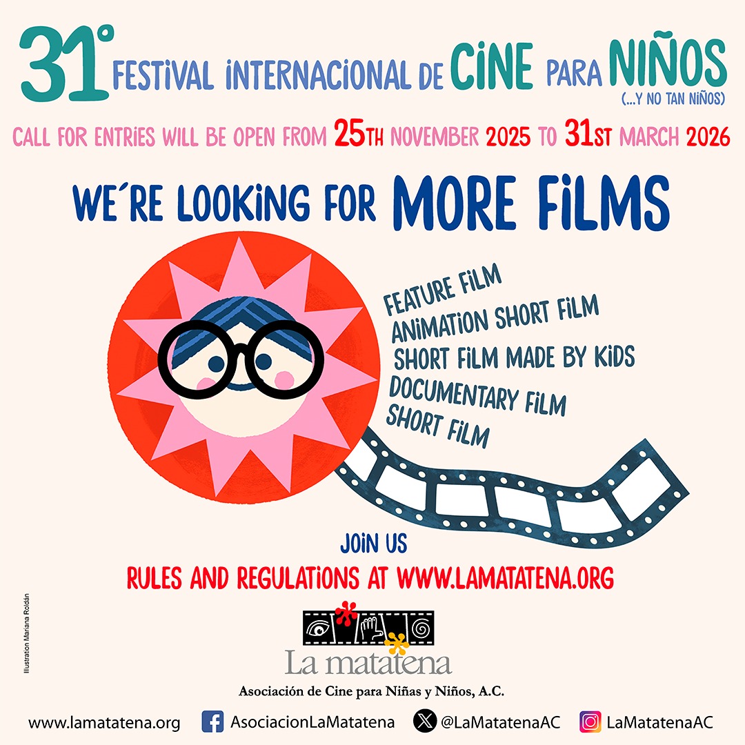 La Matatena Asociación de Cine para Niñas y Niños, AC, invites to participate in the 31thInternational Children's Film Festival (…and not so Children), it will be held in August, 2026 in several cinemas of Mexico.