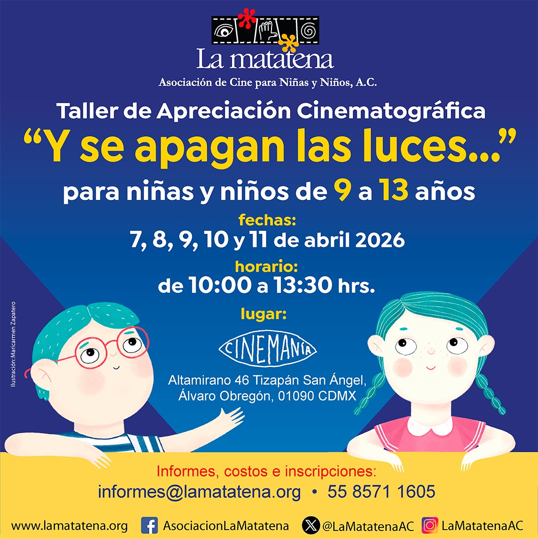 En el Taller de Apreciación Cinematográfica “Y se apagan las luces...” donde las niñas y niños conocerán más sobre cine y obtendrán las herramientas necesarias para apreciarlo y así dar paso a la reflexión. El taller fomenta su mirada crítica e imaginación con ejercicios y actividades divertidas, que los guiarán a través de este proceso de conocimiento reflexivo y creativo.